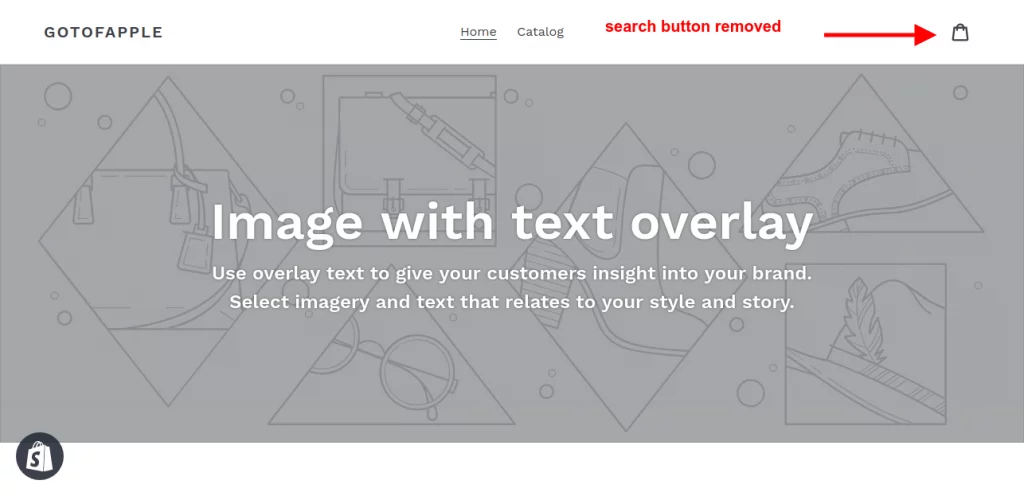 Some Shopify website owners might not want to have the Shopify search box on their website. The below image depicts the search button in the Shopify store clearly.