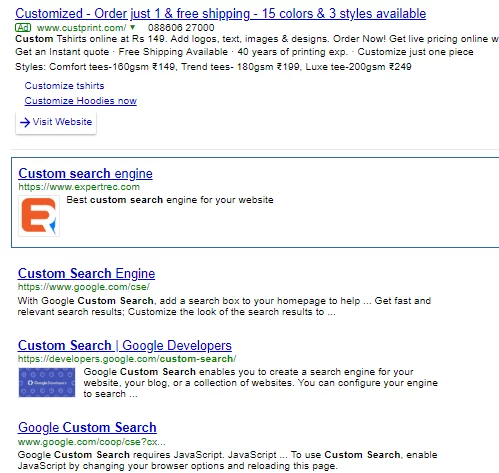 - Now lets go to the custom search engine we created and check if the promotion is triggering or not for the search query “custom search”.