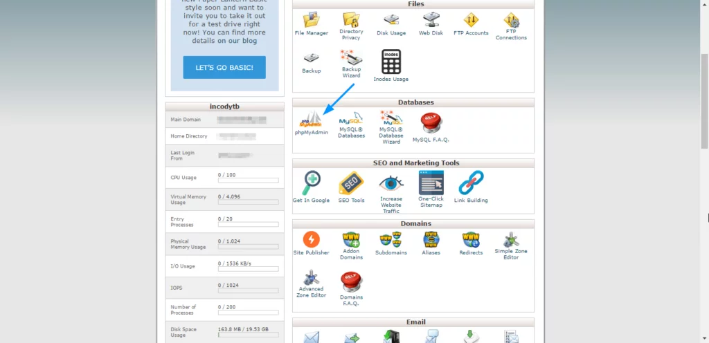- Click on Phpmyadmin.